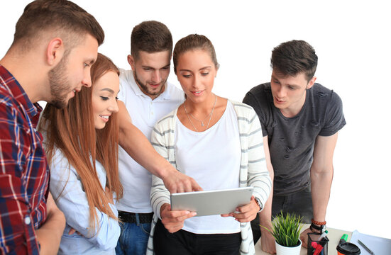 College diversity. Shot of a diverse group of college students sitting outside using digital tablet.