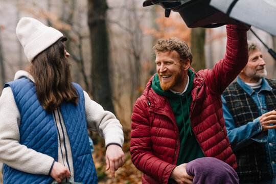 Happy multi-generational family celebrating sons and daughters day