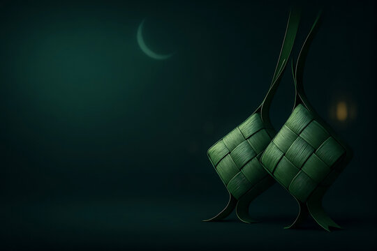 Minimal Ramadan Background with Traditional Green Ketupat and Copy Space