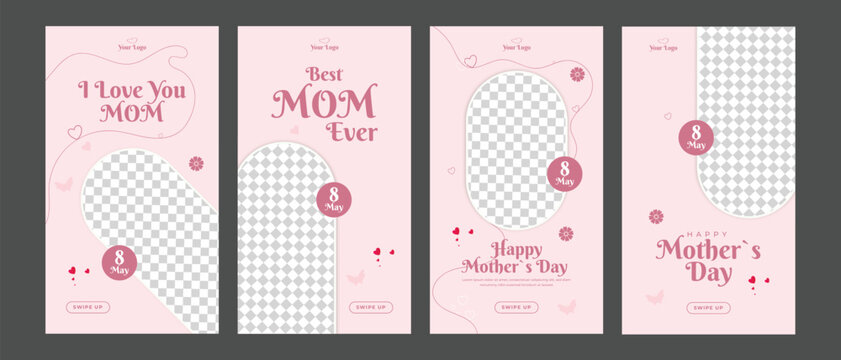 Mother's Day Poster or banner with sweet hearts,flower and pink gift box on pink background.Promotion and shopping template or background for Love and Mother's day concept.Vector illustration eps 10