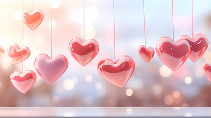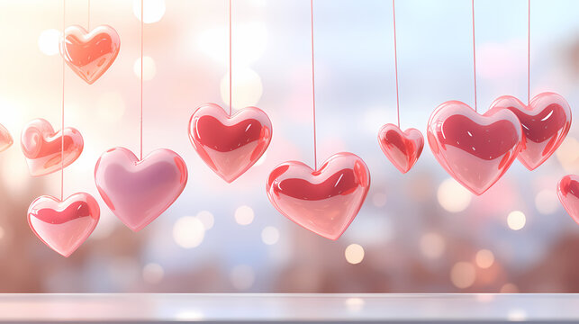 3d rendering. Valentines Day banner with heart shaped balloons. Holiday illustration banner. for valentine and mother day
