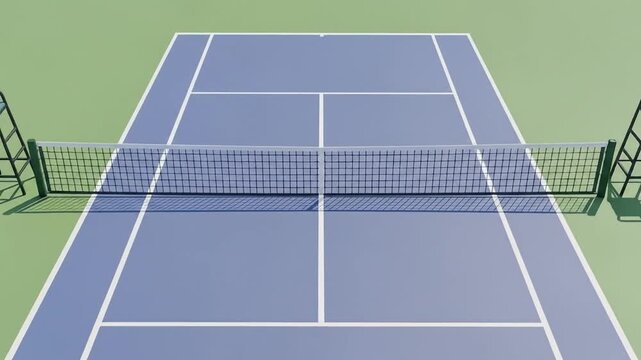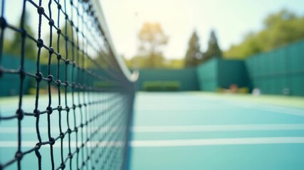 Brilliant sunshine illuminates a pristine tennis court, promising vibrant play