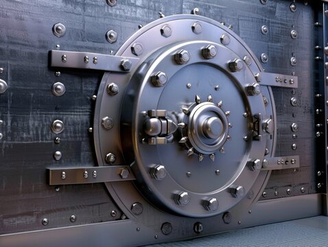 Durable safe door symbolizing fortification in banking vaults