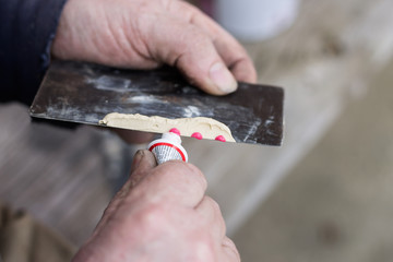 mixing putty and hardener for car body putty, body repair.