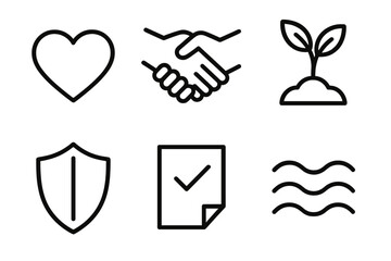 Icons of Family Values. Family Values Set linear icon set: love heart, trust handshake, growth plant, protection shield, gratitude note, harmony wave