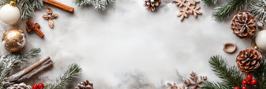 A white background with a Christmas tree and decorations. The tree has a cross on it and there are pine cones and other decorations