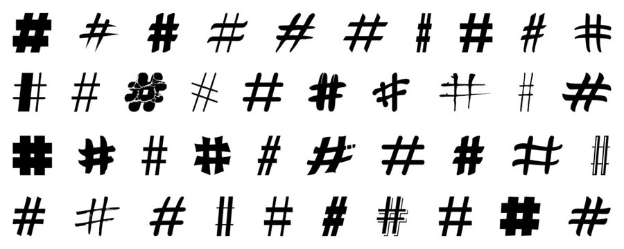 Hand drawn hashtag signs isolated on white background. Vector clip art for social media.