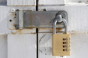 Old-style lock with a hasp on the timber entrance