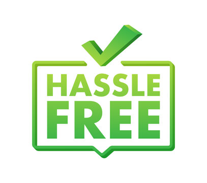 hassle free zone graphic with crossed out text. stop hassle concept with red prohibition symbol. red no hassle warning sign on black background. symbol for smooth and convenient service.