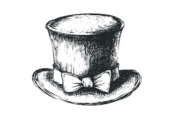elegant top hat with a leather band and bow tie isolated, transparent background