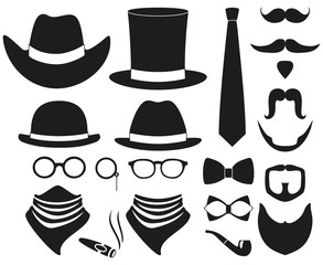 Set of hipster animals. Monkey in Bowler Hat and bow tie with tobacco pipe, bear with bow, red fluffy Persian cat in hat, glasses and bow tie