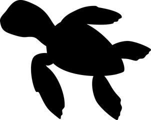 Black silhouette of cartoon hatchling of sea turtle on white background