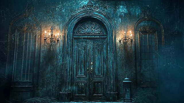 Mystery and suspense with door ajar casting eerie purple light