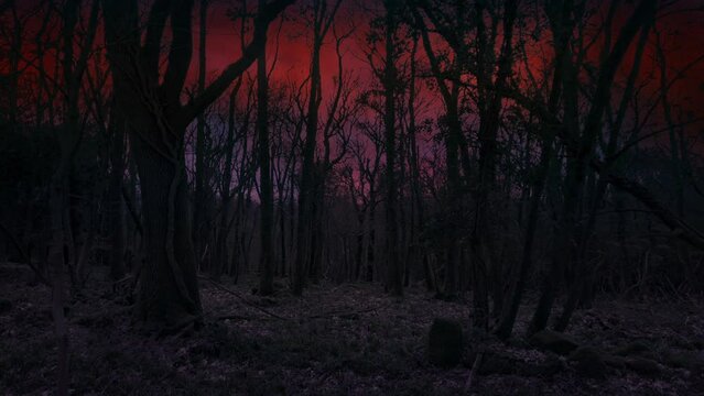 Walking In Scary Woodland With Stormy Paranormal Sky