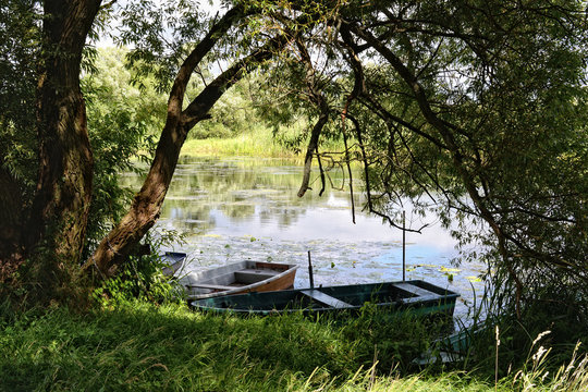 Havel river  (Brandenburg, Germany). boats on shore