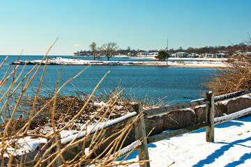 Landscape of the Grand Haven Lighthouse, pier, and catwalk at dawn, Lake Michigan, Michigan, USA