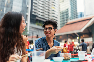 Young asian couple having dinner in one hawker