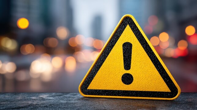 A glowing orange hazard alert sign displayed on a textured surface, emphasizing safety and awareness. The sign warns of potential dangers, highlighting the importance of caution.