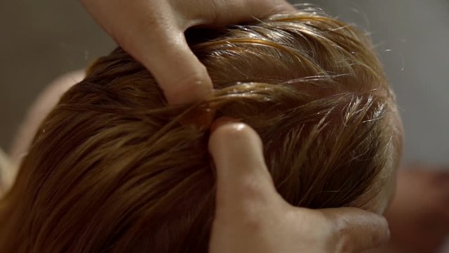 beautiful young girl with dark hair doing a head massage in a massage parlor.