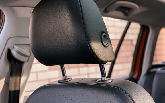 Car headrest seat in modern car. Leather headrest.