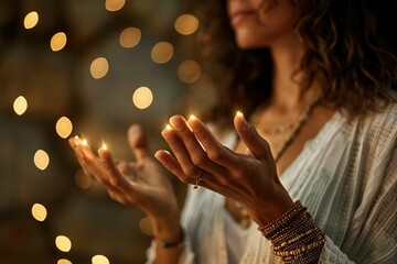 Hands of a spiritual medicine woman burning medicinal herbs in a bowl; sacred ritual smoke for purification and healing of soul and body. natural preparation of a shaman healer, for holistic healing