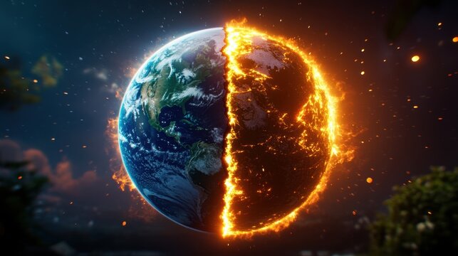 Globe heating up, sustainability at risk, 3D illustration