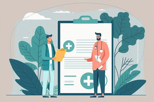 Healthcare insurance explained through engaging visuals of co-payment, coverage, and deductible themes, featuring characters interacting with financial elements. Flat vector illustration