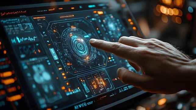 Digital health records system showcased on a touchscreen, modern medical technology with a sleek user interface, data-driven healthcare solutions.