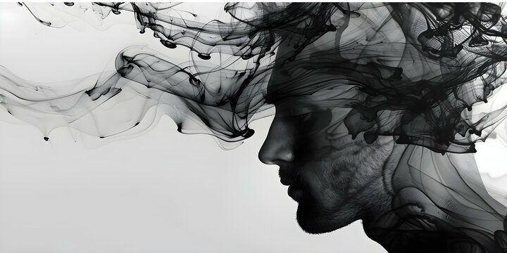 Ink Blot Art in High Resolution: A Man's Face for Mental Health Awareness. Concept Mental Health Awareness, Ink Blot Art, High Resolution, Man's Face