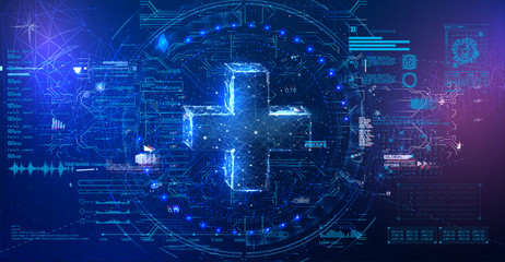 Abstract health medical science healthcare icon digital technology science concept modern innovation,Treatment,medicine on hi tech future blue background. for wallpaper, template, web design