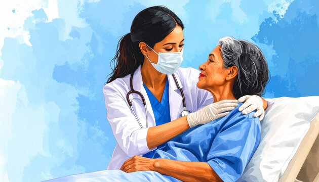 3D Render of Healthcare Worker Comforting Patient in Medical or Clinical Setting