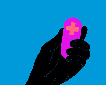 Oversized medicine capsule in hand. Overmedicated society