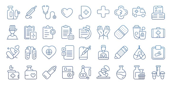 A comprehensive collection of medical and healthcare icon set in a clean and modern line style for design concepts