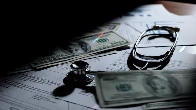 Stethoscope on desk with U.S. Capitol in background symbolizing American healthcare system, health policy, government reform, medical legislation, and public health debate