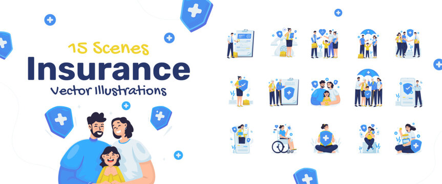 3d vector illustration of Insurance concept. Assurance protection, policy Guarantee business, business Insurance, Insurance life, Health insurance, Finance, Shield, Umbrella, accident. Eps 10