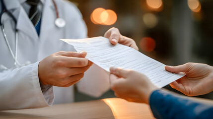 Stack of medical documents and a stethoscope on a desk in a healthcare setting
