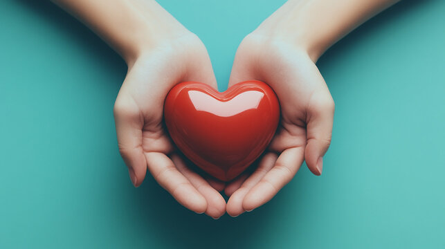 Offering love and care: Heart gently cradled in open hands, symbolizing hope, support, and compassion, fostering a sense of community and well-being
