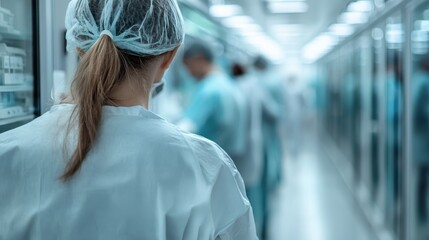 A surreal image of a focused healthcare worker in protective gear, surrounded by abstract elements, signifying stress and intensity in the medical field.