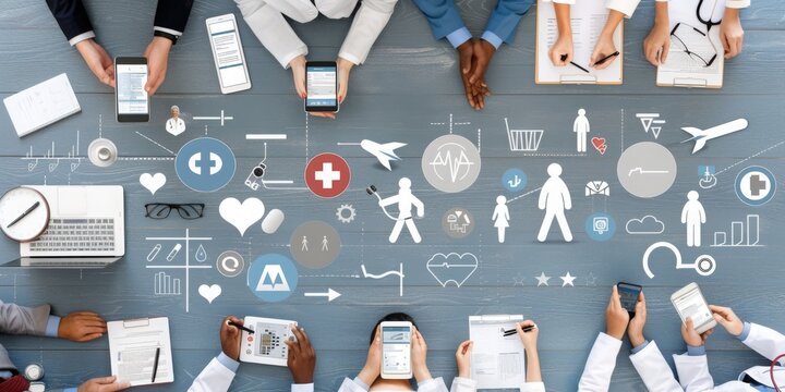 Healthcare Professionals Engaged in Collaborative Medical Planning Over a High-Tech Digital Interface, Symbolizing Modern Medical Innovation, Generative AI