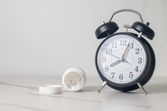 alarm clock and pills medical background time to take pills taking pills by the hour right time for taking a medicine sleeping pills insomnia healthcare concept