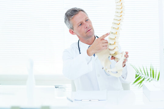 Doctor showing anatomical spine to his patient