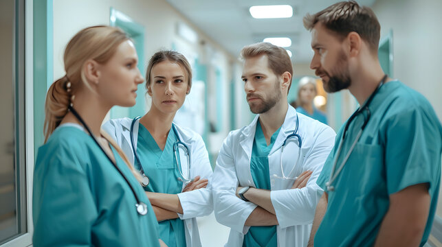 Conflict between doctors in hospital, different medical opinions or communication problems. Tense or uncomfortable work environment among healthcare workers