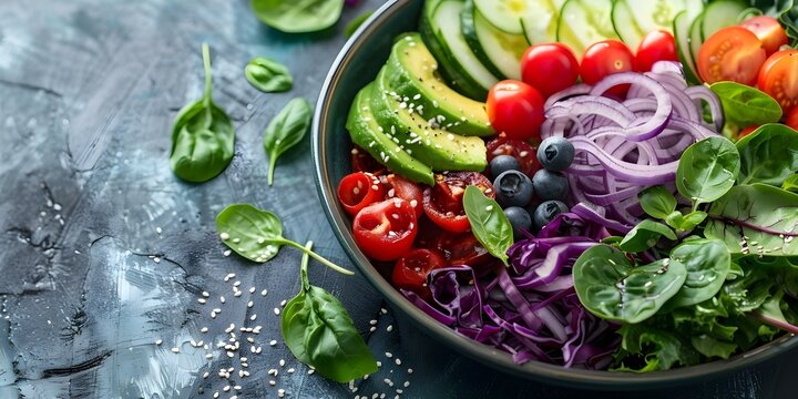 Colorful arrangement of nutrient-rich superfoods for healthy living