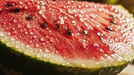 Refreshing watermelon slice glistens with cool water droplets, perfect for summer vibes and healthy eating promotion