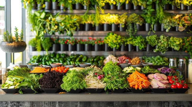 Vibrant salad bar with array of fresh vegetables, ideal for healthy eating promotions and food photography
