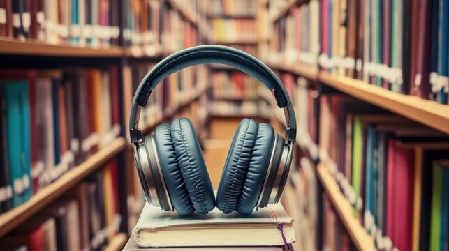 A serene listener with headphones on, with sound waves radiating outward, depicting the calming and immersive nature of podcast listening