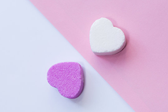 White and pirple candies in shape of heart