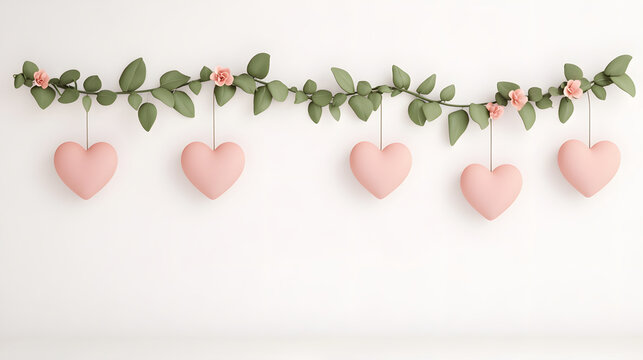 Hanging heart garland with floral design, featuring soft pink hearts and green leaves, perfect for romantic decor and celebrations