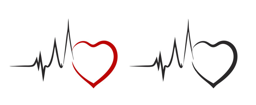 Blood and heart donation concept with a heart and  a lifeline, icon set in red and black designs