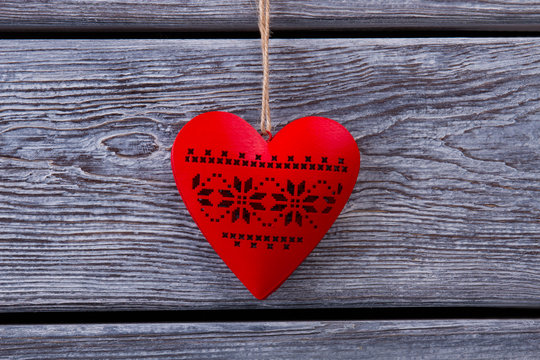 Red wooden heart shaped ornament